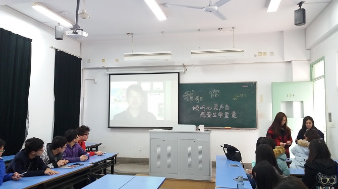 14级海洋科学1班的每一位同学都将自己的想说的话录了下来,制作成了一段“我想对你说”的视频。3月17日下午,播放完“我想对你说”视频后,海洋班的“我和你”320心理周主题班日活动在致用304教室拉开了序幕。
